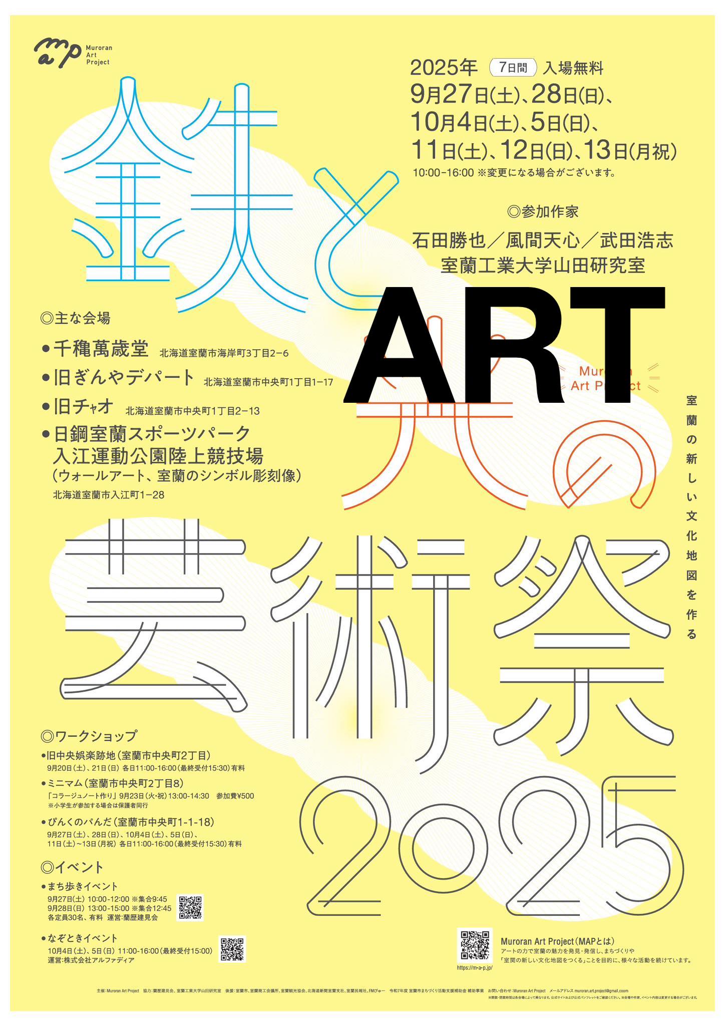 室蘭市がまっている! 9月と10月「アートな室蘭」があなたをお待ちしてます! 今年も北海道室蘭市の芸術祭。「ムロランアートプロジェクト」(M・A・P)が開催されます! 今年は会場はJR室蘭駅から近いギャラリーや中央町...