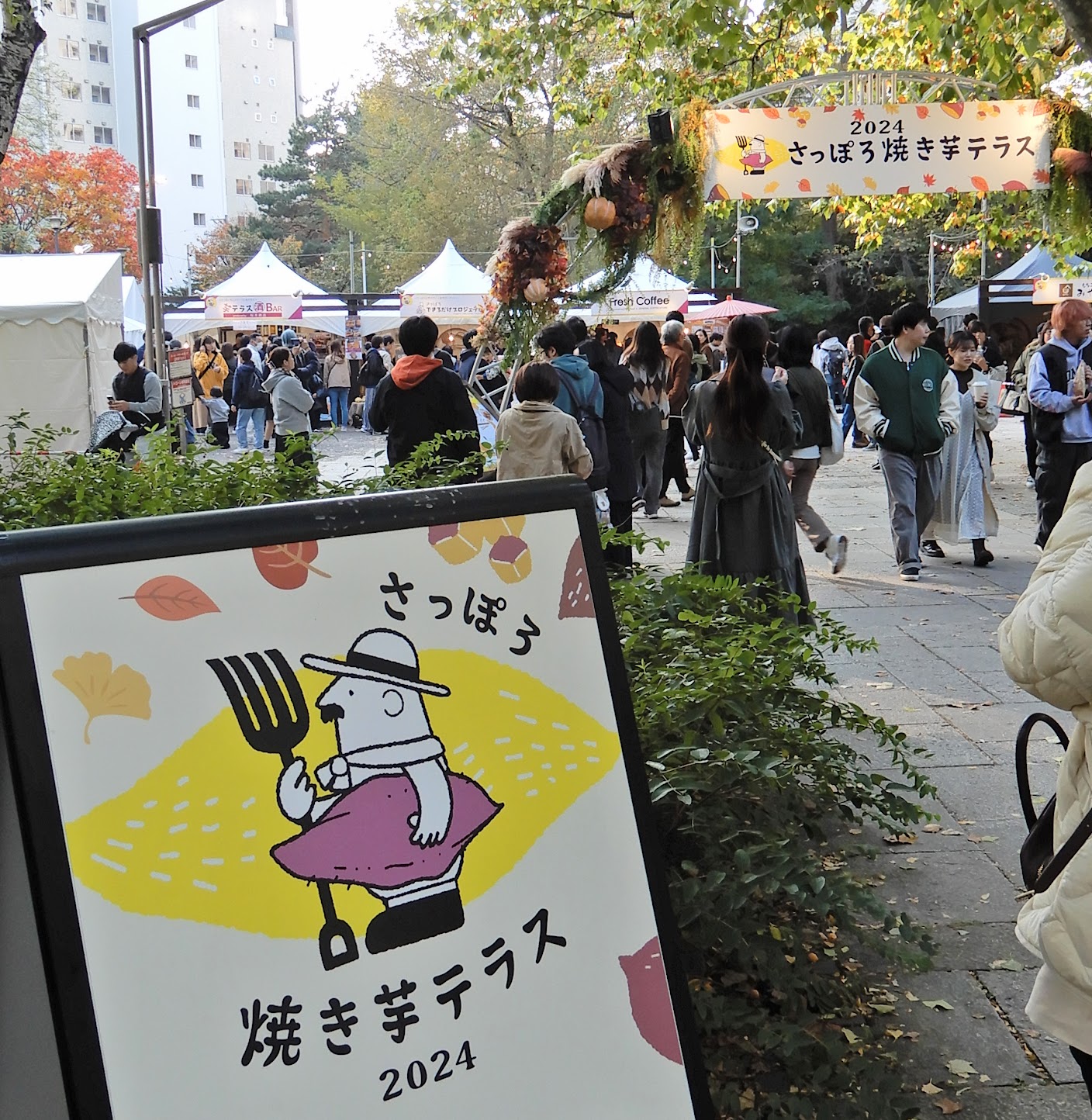 おいしいまちづくり〜焼き芋テラス 中島公園で開催の「さっぽろ焼き芋テラス」。夕方に訪れると大変な人、行列。みんな焼き芋好きだなーと思う。僕も好き。紅葉の中島公園での焼き芋が実に良く似合う。みんなハッピーになれる空間。ただ...