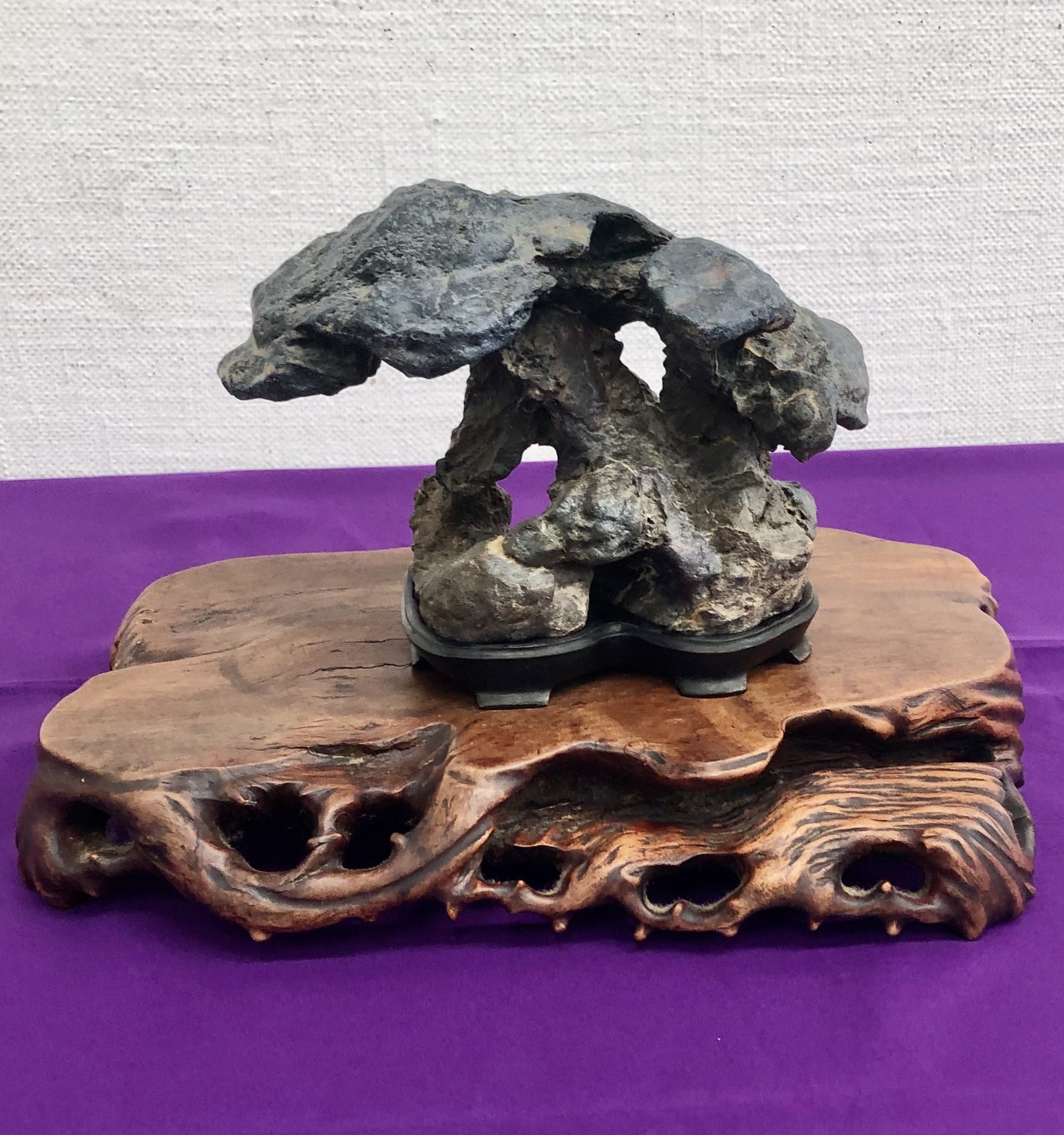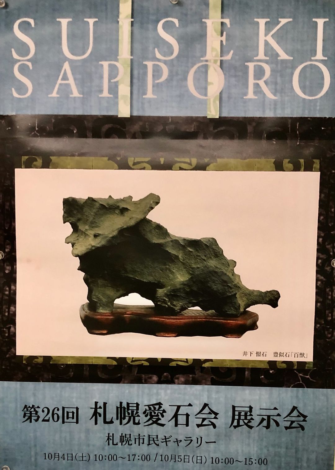 飾りぃ〜自分の展示 先週末の『札幌愛石会展』での自分の作品。9月の『北海道小品盆栽会展』と同じ石だけど、卓を変えたり、水盤を銅盤にしたり、添も変えて「月」の掛け軸も加えた。その結果、石の存在感を出せた気がする。石自体...
